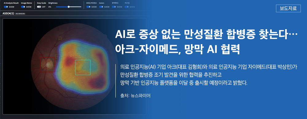 À̿ܿ¡µµ (ÁÖ)¿¡À̾ÆÀÌÀλçÀÌÆ®ÀÇ Çõ½ÅÀûÀÎ ÀÇ·á Ç÷§ÆûÀ¸·Î AI ¸Á¸· Áø´Ü Ç÷§ÆûÀÌ °³¹ßµÈ »óÅÂÀÌ´Ù. ºÎ»ê´ëº´¿ø ¾È°ú ÀÇ·áÁø ±ÇÇÑÁ¶ ±³¼ö¿Í ¹Ú°ÇÇü ±³¼ö°¡ Á÷Á¢ ¼³°èÇÑ AI ¾Ë°í¸®ÁòÀÎ ¾ÈÀú(¸Á¸·) Ä«¸Þ¶ó¿Í AI½ºÅ©¸®´×(Á¶±âÁø´Ü)¼Ö·ç¼ÇÀº µ¿°ø¹Ý»ç¸¦ ÀÚµ¿ Á¶ÀýÇØ ¸Á¸·À» Á¤È®ÇÏ°Ô ÃÔ¿µÇϰí, ÃÔ¿µ ¿µ»óÀ» AI·Î 0.5ÃÊ ¸¸¿¡ Á¤È®ÇÏ°Ô ºÐ¼®ÇÑ´Ù. ÀÌ´Â 50¸¸ ÀåÀÇ È¯ÀÚ ¸Á¸· »çÁøÀ» µ¥ÀÌÅÍÈÇØ Á¤È®ÇÑ ºÐ¼®ÀÌ °¡´ÉÇÏ¿© 3´ë ÁÖ¿ä ½Ç¸í ÁúȯÀÎ ³ì³»Àå, Ȳ¹Ýº¯¼º, ´ç´¢¸Á¸·º¯ÁõÀ» Á¶±â¿¡ Áø´ÜÇÒ ¼ö ÀÖ´Ù.